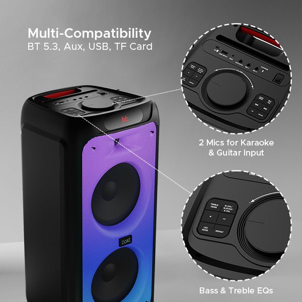 From deep. rumbling bass that ignites the dance floor to crystal-clear vocals that captivate your guests. with the power of 160W boAt Signature Sound. the PartyPal 400 delivers an audio experience unlike any other.