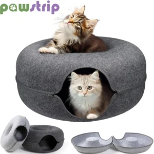 Donut Cat Bed for 2 Cats Detachable Pet Cat Tunnel Interactive Game Toy Dual-use Felt Indoor Kitten Sports Equipment Cat Supplie